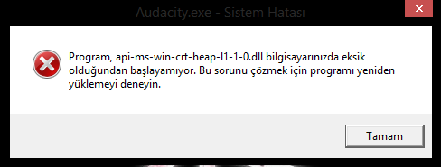 Audacity "api-ms-win-crt-heap-l1-1-0.dll" Hatası