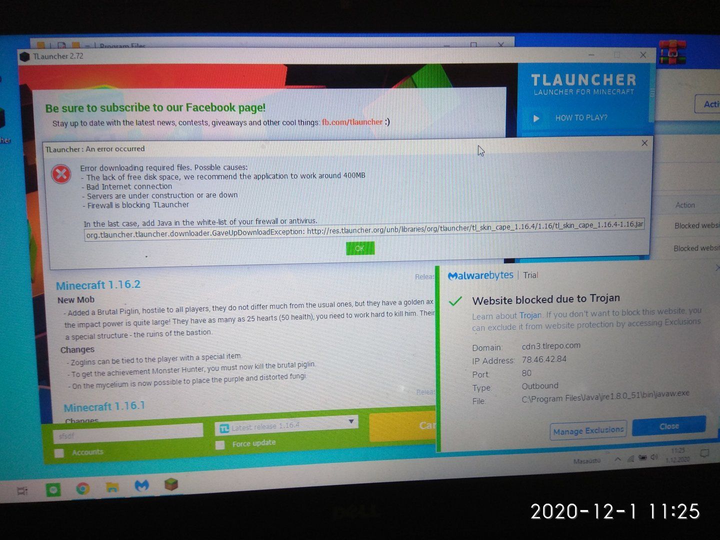 Az önce kardeşim TLauncher üzerinden MC oynarken hata verdiğini gördüm, Java'da trojan olduğunu söylüyordu. Ben de birazcık araştırdım fakat bir sonuca ulaşamadım, anti virüs programım: Malwarebyts, şimdi hatanın fotoğrafını size atacağım. Eğer bu konu hakkında bir şey biliyorsanız lütfen cevap verin.