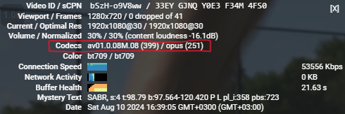 YouTube eskisi gibi VP9 codec haricinde AV01 codec kullanmaya da başladı. VP9 codec için 2K video atarak VP9 olmasını sağlayabiliyorduk peki AV01 codec olması için YouTube'a nasıl video atmamız gerekiyor? Örneğin bazı kanallarda 1080p videoları bile 'AV01 codec' ile işlenmiş oluyor bunu merak ediyorum. Ekteki örnekler, 2.sinde ki gibi sorun yaşadığım oluyor.