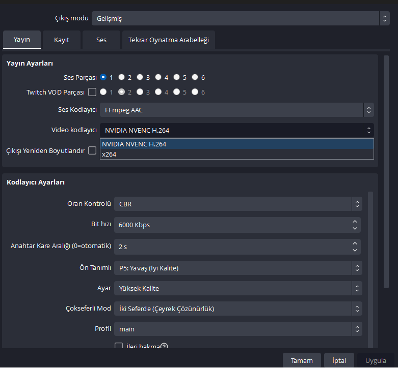 Yakın zamanda RTX 4080'e geçiş yaptım, OBS en son sürümünü kullanıyorum NVIDIA sürücülerini kaldırıp tekrar kurdum güncel bir biçimde. OBS yayın çıkış kısmında AV1 codec görünmüyor ama kayıt bölümünde görüyorum, yayını AV1 codec ile nasıl yapabilirim bilgisi olan arkadaşlar yardımcı olur ise çok sevinir, teşekkürler.