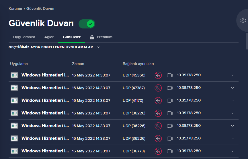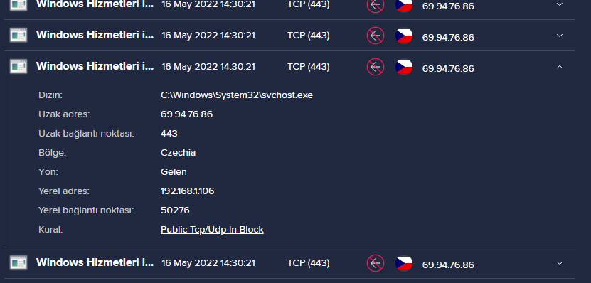 Avast az önce "şu an korunmuyorsunuz" dedi. Girdim, ne oldu anlamadım etkinleştirdim gezerken. Avast'ta günlükler kısmında bu arkadaşları gördüm, ne olduğunu anlamadım. Bilen var mı, virüs müdür? IP'me mi bağlanıyor anlayamadim? Bunlardan bir sürü var, bilgisayarı açar açmaz başlamışlar. Windows hizmetleri için ana bilgisayar işlemi her saniye oluyor, az önce yine oluştu bu şekil. Bilenler yazsın, net bir şekilde sizde de var mı bu tür şeyler?
