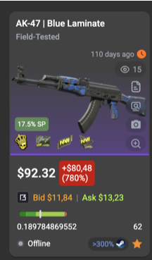 AWP Asiimov (eskimiş) verip AK-47 Mavi Laminant (görevde kullanılmış) alacağım. Fakat alacağım AK-47 skininin üzerinde değeri yaklaşık 450 dolar olan Crown Foil Sticker'ı var. Sizce mantıklı olur mu AWP'yi verip AK-47 almak? AWP'ye 90 dolar verip almıştım bu arada.