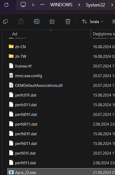 Siz yine de elinizle silin mümkünse o dosyayı sistem32'den. Geri yükleme noktası da oluşturun ne olur ne olmaz.hocam çok anlamıyorum bu işlerde kusura bakmayın. 2 yıl sonra fark ettim ben de garip.