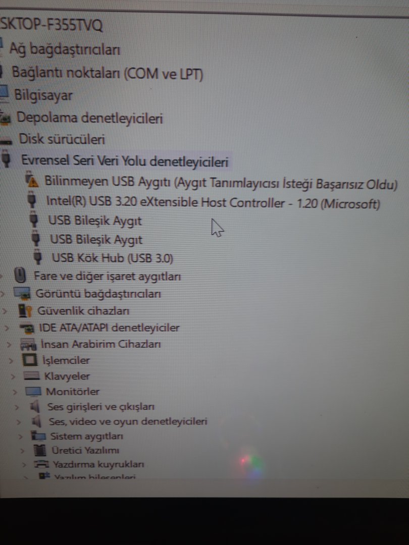 Aygıt tanımlayıcısı isteği başarısız oldu hatası