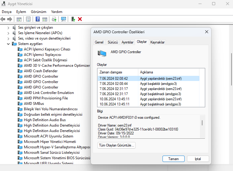 Aygıt yöneticisinde AMD, fare kısmı ve bazı şeylerde olaylar kısmında "aygıt başlatılamadı" diyor. Neden böyle yardımcı olur musunuz?