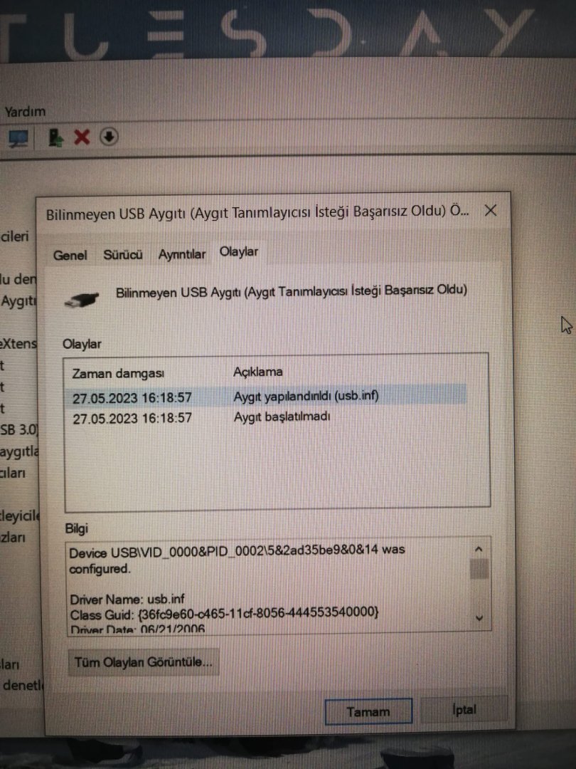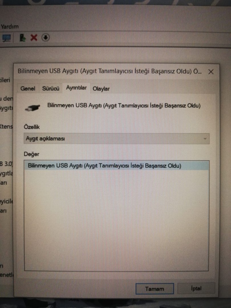 donanım kimliğini paylaşamıyorum, reset attığım için usb aygıtı yok oldu tekrar aynı olayı yaratmam lazım