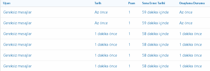 Tam aynı anda değil de, geçen gün korsan içeriğe teşvik uyarım bitmeden gereksiz mesaj uyarısı da almıştım.