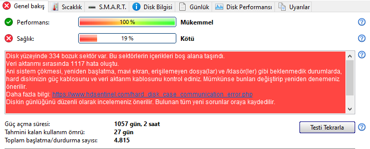 Diskler yazılımsal ve donanımsal olmak üzere 2 tür bad sector arızası verirler.