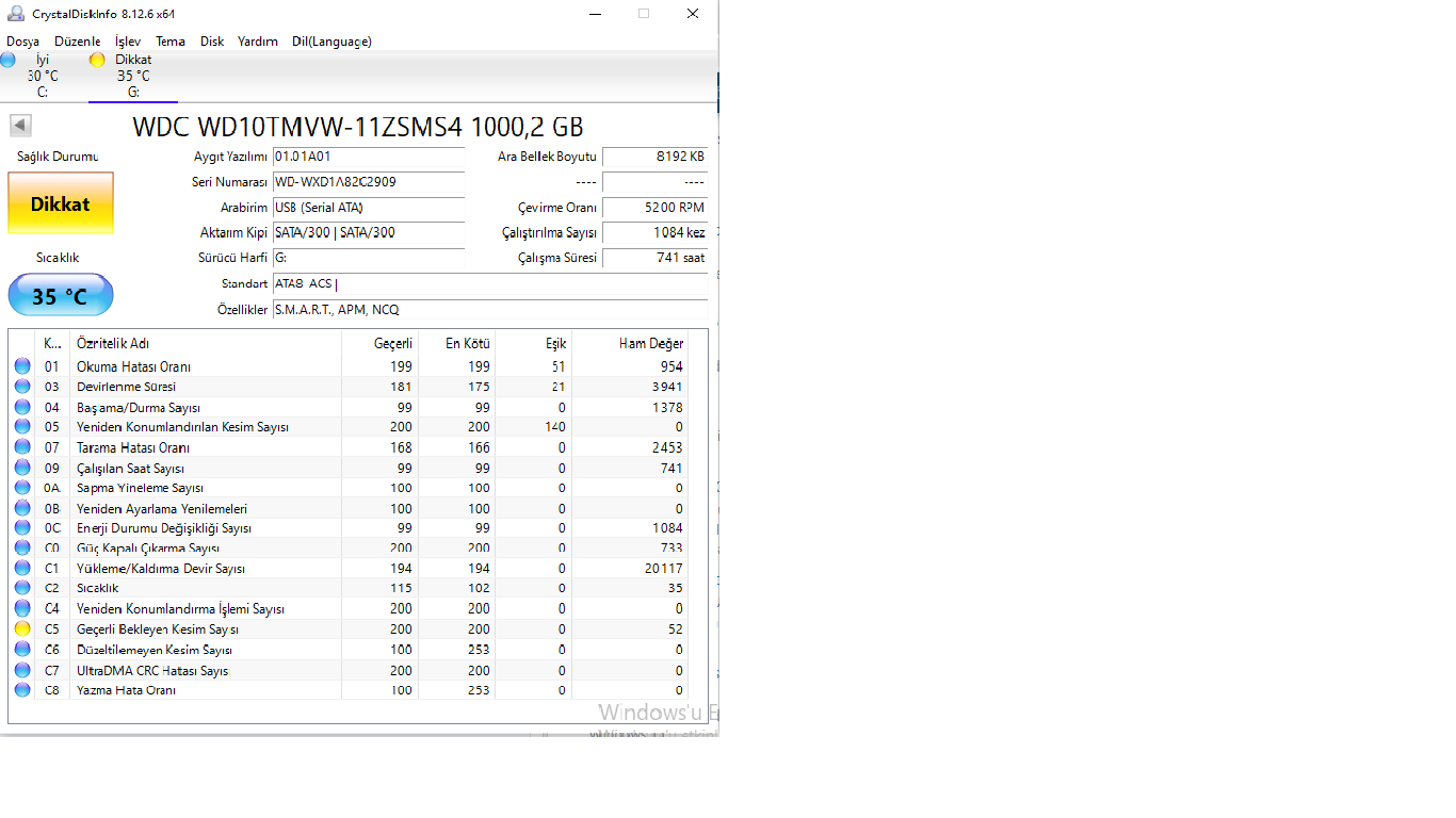 Çok ciddi bir sorunum var, yardımınız gerek. Benim HDD 1 TB ayvayı yemiş. Fotoğrafları göreceğiniz üzere bad sector var. Laptopa takıyorum, fotoğrafları, belgeleri almak için ama donuyor kısa sürede ya da yanıt vermiyor. Bu işi nasıl çözebilirim? Studio uygulamasında geri getirilebiliyor. Daha önce denedim ama başka bir yol var mıdır? HD Tune hızlı tarama yapmama rağmen hali görüyorsunuz. BIOS bakacağım şimdi.
