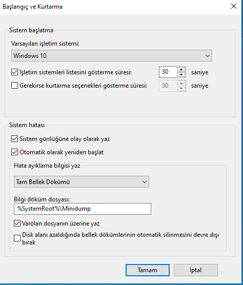 Tam bellek dökümü yerine otomatik bellek dökümü ayarını seçin lütfen. Tekrar dump oluşmazsa belirtin ve oluşursa da dump dosyasını paylaşın. Şimdilik bana kalırsa sorunun kaynağı disk ya da disk sürücüsü.