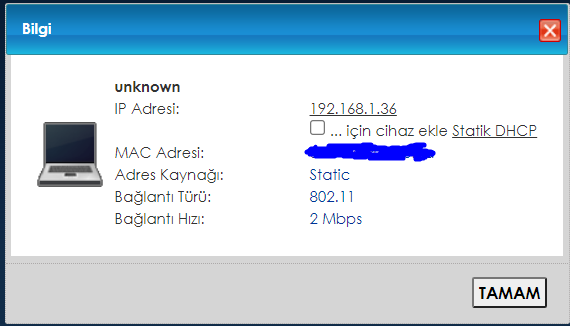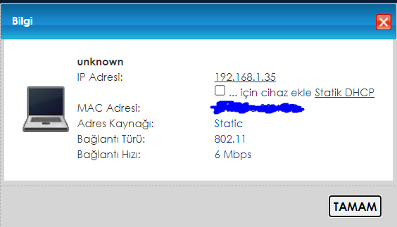 İşin garip yönü ayarlarda hız kısıtlaması gibi bir şey de yok. Bilgisayarımdaki internet bağlantı ayarlarını da kontrol ettim, benim bilgisayarımda interneti yavaşlatacak bir ayar yok ki zaten modemden kaynaklı gibi. Ek olarak normalde bilgisayarımı tanınırdı direk adı çıkardı şu an unknown olarak çıkıyor.