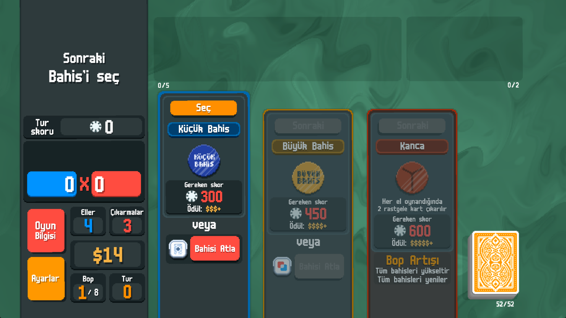 - balatro'yu Steam'den başlatın ve sağ alttan Türkçe dilini seçin. Tebrikler, balatro için Türkçe yamayı yüklediniz