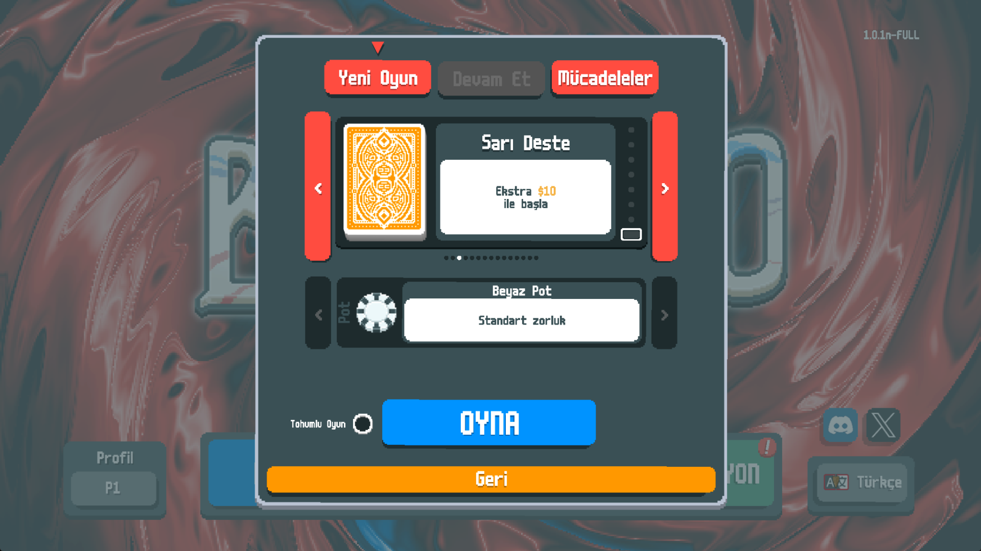 - oyunu başlatın henüz yapmadıysanız, sağ alttaki düğmeyi kullanarak Türkçe dilini seçin. Tebrikler, Balatro'yu Türkçeye çevirdin
