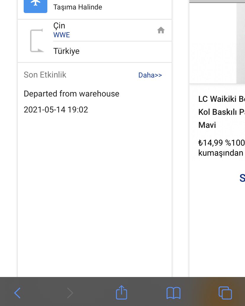 Merhaba, Banggood'an bir ürün aldım ve alırken Turkey Direct mail seçtim. Kargo harektelerini kontrol ettiğimde (departed from warehous out of stock) Mayıs 14,2021 19.02'de, en son hareket. Bu sonuçları aldığım site Banggood'un kendi sitesi diğeri de 17track sitesinden kontrol ettiğimde ise sadece (departed from warehous) yazıyor. Hangisi doğru? Bilgisi olan yardımcı olabilir mi? İçim hiç rahat değil çünkü. Aşağıya da görsellerini koydum. Birini Banggood sitesinden aldım, diğerini 17 track sitesinden.