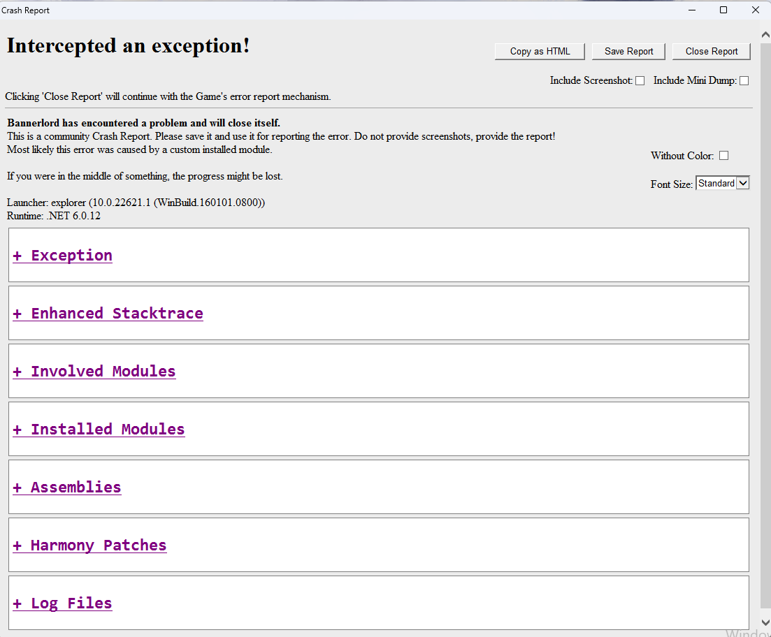 Merhaba, Bannerlord oyunu normal açılınca açılıyor ama mod yükleyince bu hatayı verip direk kapanıyor. Bazı küçük modları denediğimde'de ilerleme kaydedilmiyor uyarısı veriyor veya modu algılayıp açmıyor.