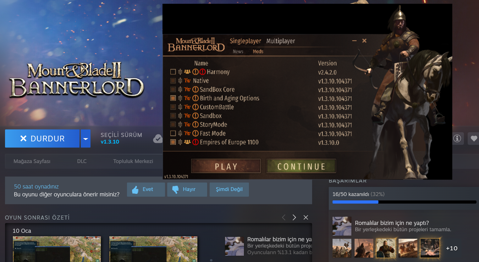 Herkese merhaba, Bannerlord'da empires of europe 1100 modunu kurmak istiyorum. Sürümü aynı ayarlamama rağmen hata veriyor. Yardımcı olabilecek var mı? Steam atölyeden yükledim modu.