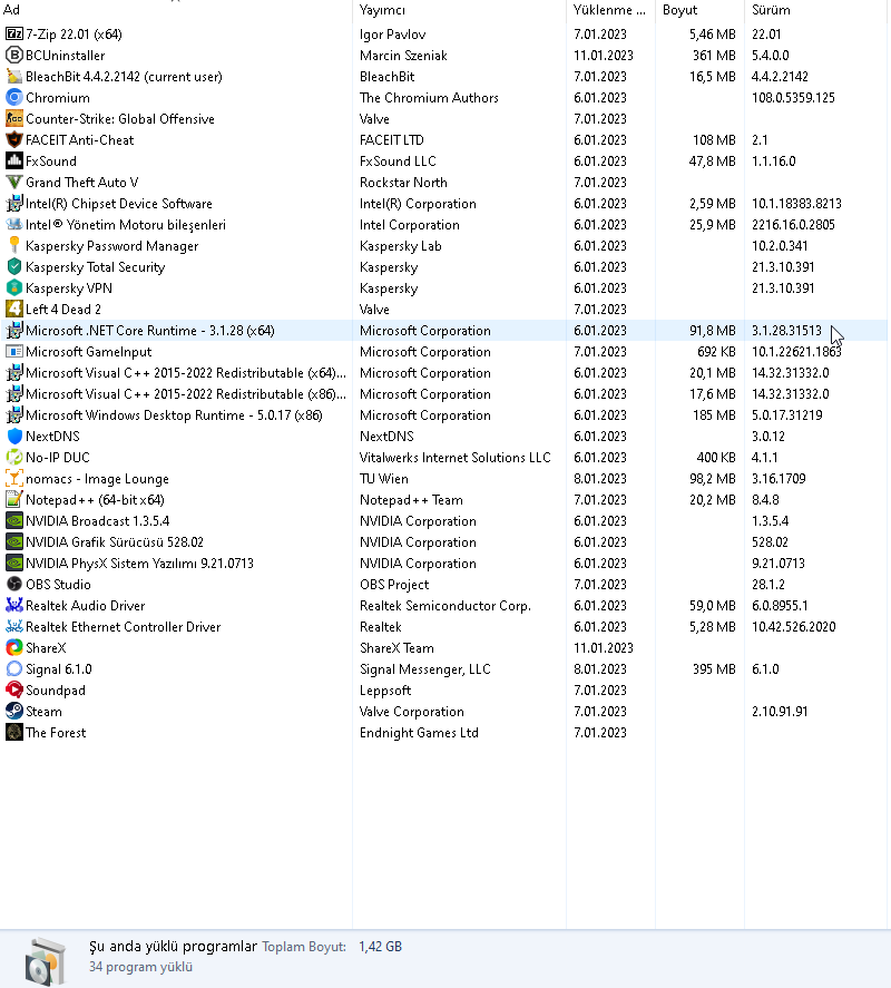 Bunlara ek olarak Microsoft Store, Gamepass, ISLC, Faceit AC ve sürücülerimi sorunsuz çalıştırabildim.