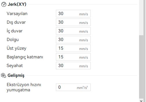 Bozulan baskının ayarları aşağıdaki gibidir.