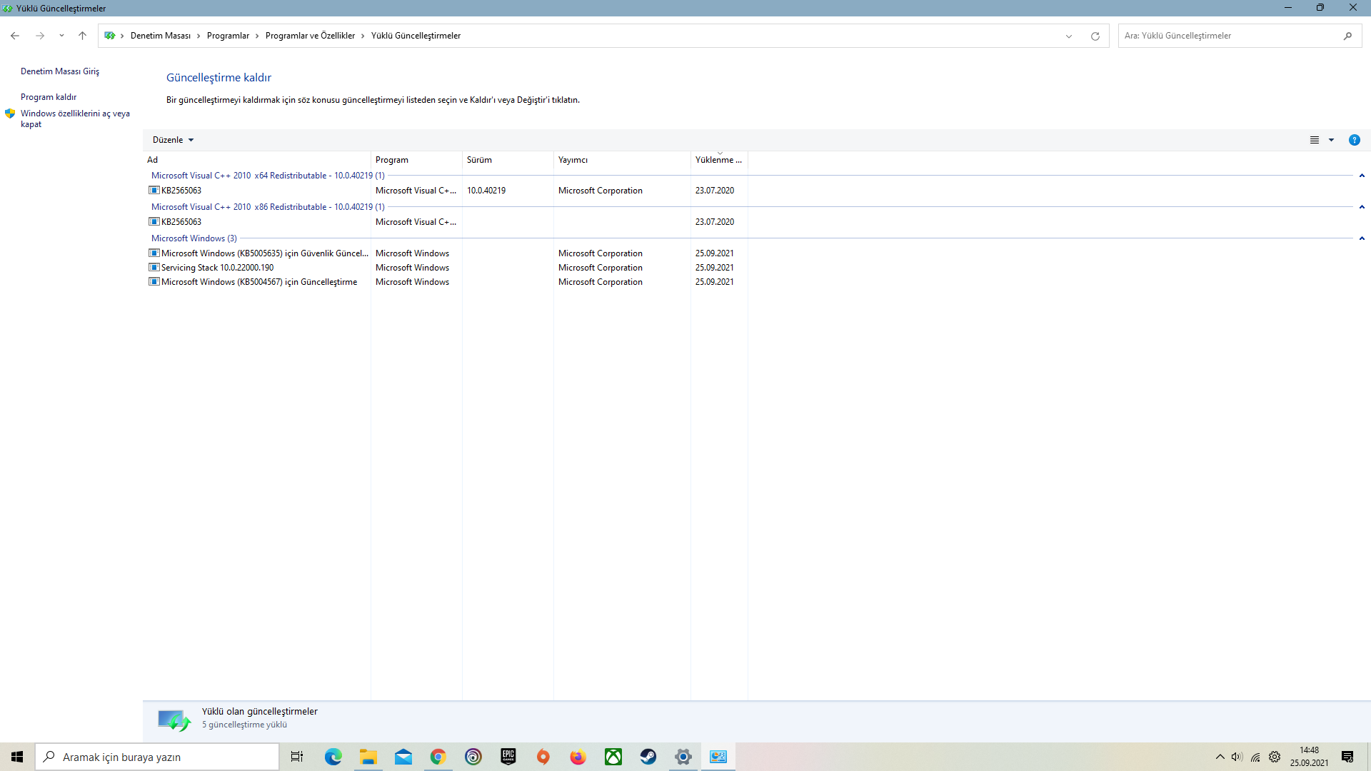 Denetim Masası -> Programlar -> Yüklü güncelleştirmeleri görüntüle kısmına girip SS atar mısınız?