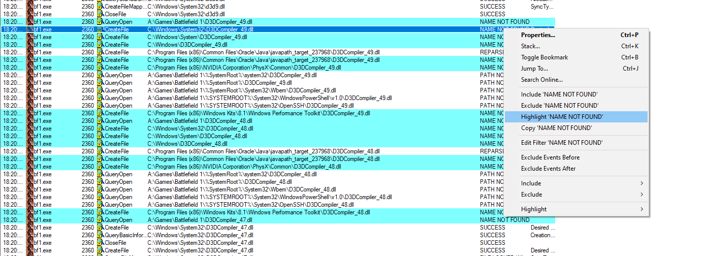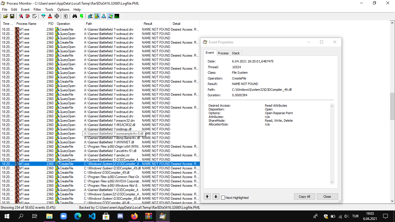 Battlefield 1 açılmıyor. Oyuna tıklıyorum, pencere açılıyor yükleme ekranı geliyor, 1-2 saniye sonra oyun kapanıyor ve beni origine atıyor. Forumda bir sürü çözüm yöntemi gördüm hepsini denedim ama olmadı. Sil yükle, güncellemeler, hatta başka hesapla bile denedim ama olmuyor. Diğer EA oyunlarını oynayabiliyorum tek sıkıntı BF1'de. Process Monitor raporu oluşturdum anlayan birileri yardımcı olursa sevinirim.
