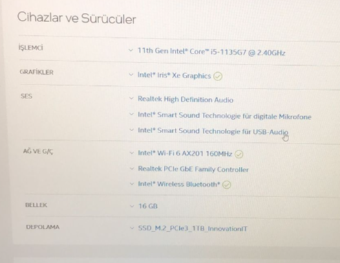 - Sistem Özellikleri