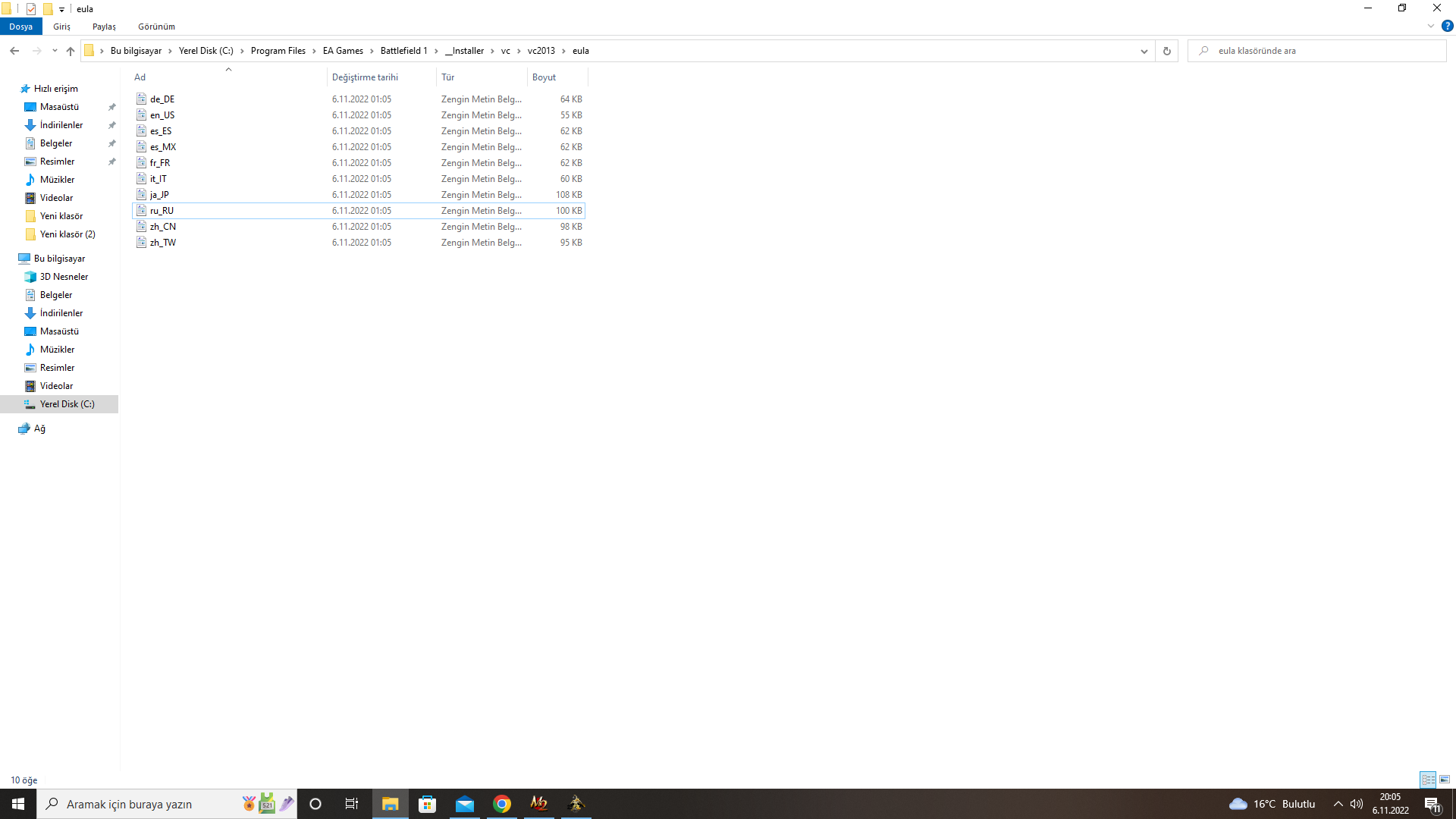 "Win+r ile çalıştırı açın ve "Regedit" komutunu çalıştırın.İzlenecek dizin "HKEY_LOCAL_MACHINE\SOFTWARE\EA Games\Battlefield 1"