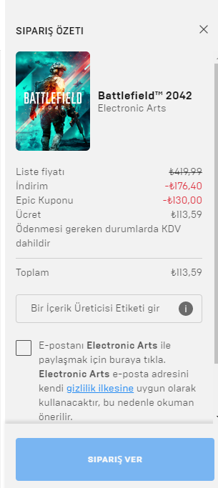 Epic Games'in verdiği kuponla sepette 130 TL indirim ile 113 TL'ye alabilirsiniz!