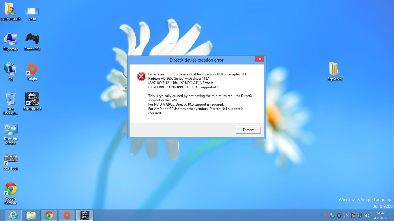 Mustafa35 dedi: Battlefield 3 ” DirectX device creation error ” Hatası Çözümü | SaniyeSinde.NET Böyle bir çözüm önermişler. Bir dene istersen. Genişletmek için tıkla... İkisinde yaptım sonuç hüsran