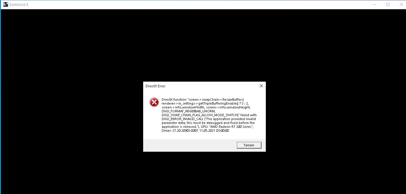 Sürücülerim güncel EA appden oyuna girmeye çalıştığımda siyah ekranda kalıp görseldeki hatayı veriyor çözümü var mı? Oyunu eskiden çok rahat girip oynuyordum ama artık girilmiyor.