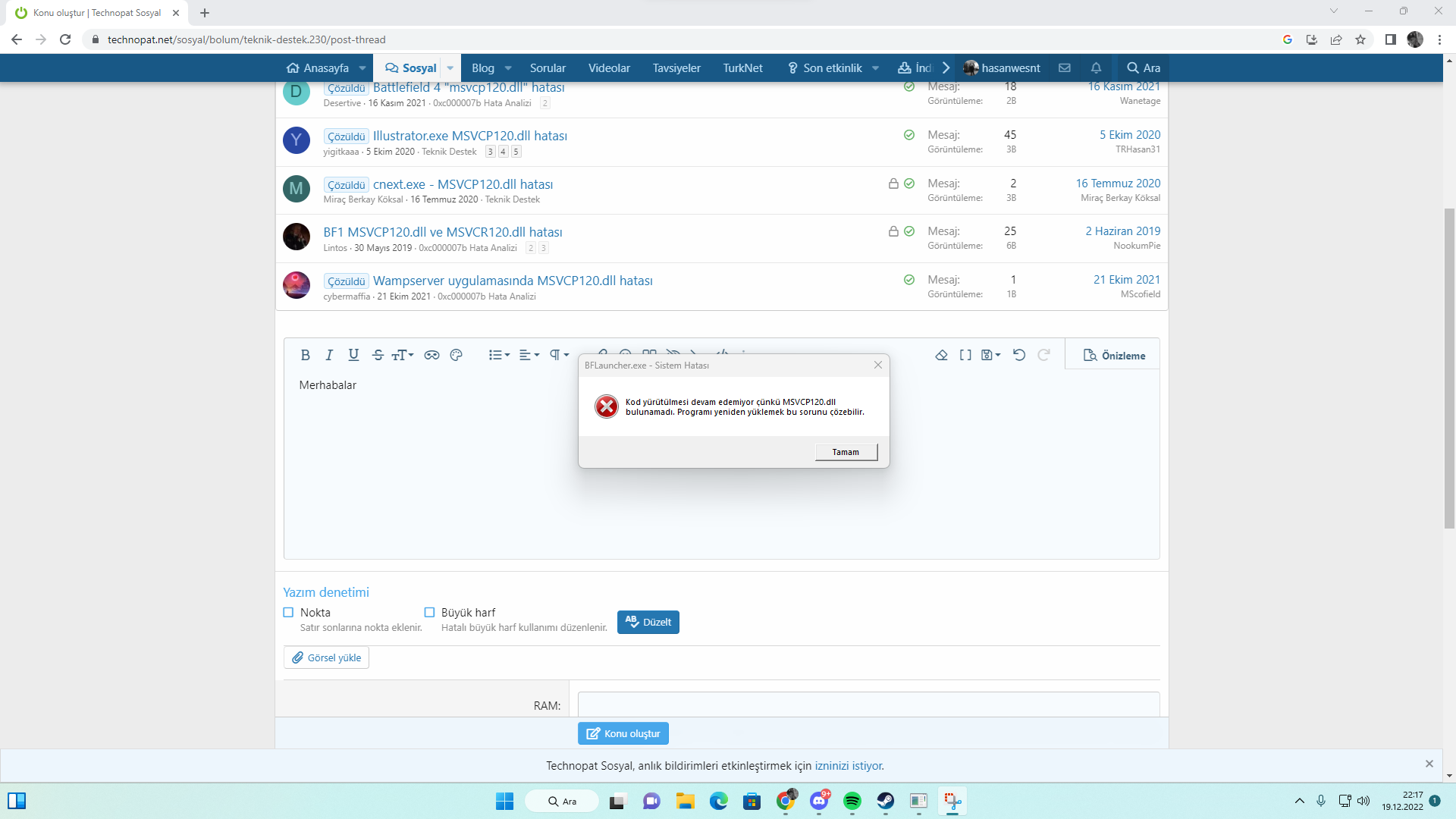 Merhaba, dün Steam üzerinden Battlefield oyununu satın aldım, herhangi bir oyun üzerine program ya da bir şey yüklemeden oyunu kurup açtım. Maalesef ki ekran görüntüsünde görünen hata ile karşılaştım. Yardım edebilecek arkadaşlarım varsa çok iyi olur.