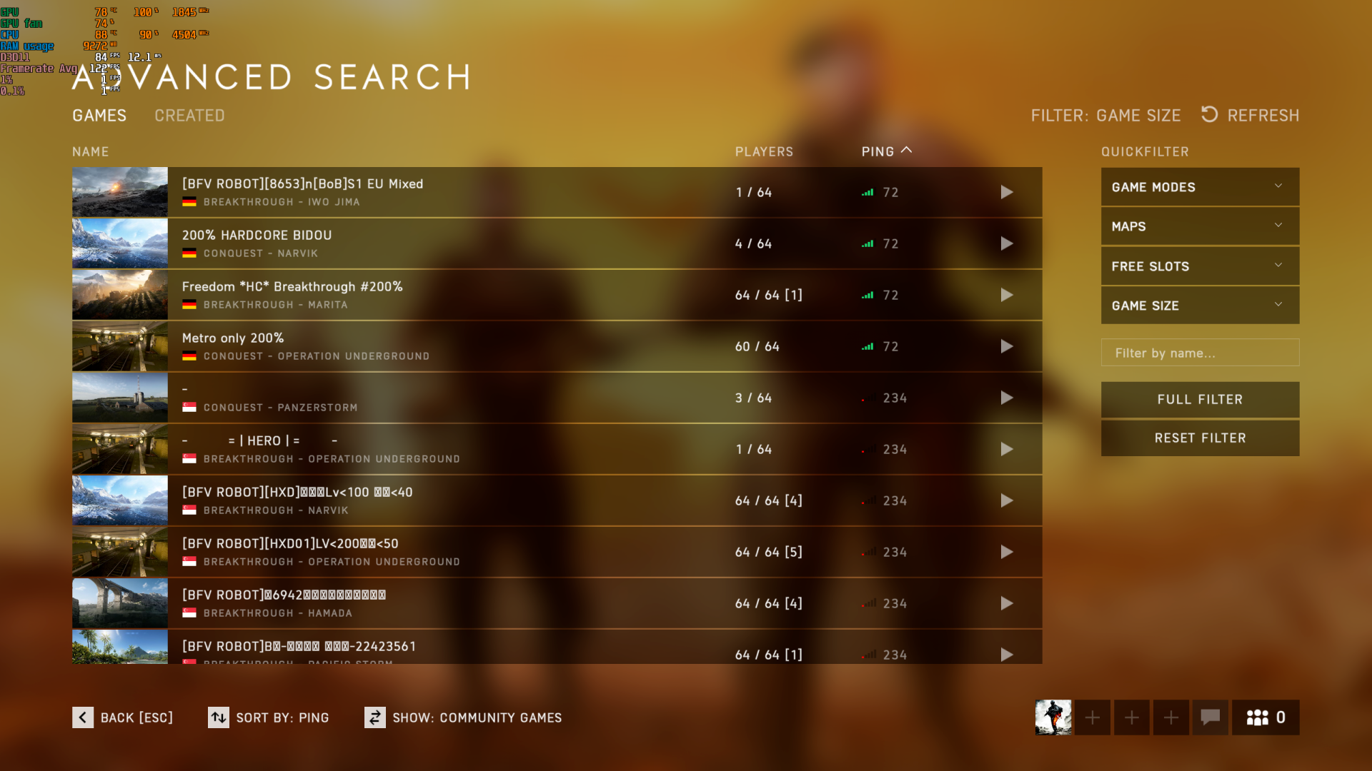 Geçenlerde bir BF 5 oynayayım dedim, sunucuların boşluğundan ziyade oyun oynanmıyor. Gördüğüm kadarıyla hileci sayısı fazla.