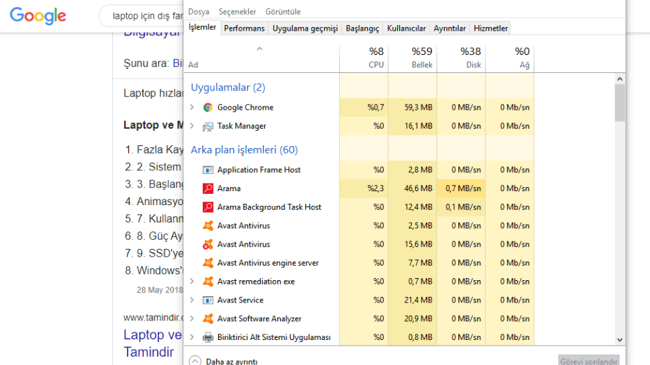 Bilgisayarımda sadece Google açık olmasına rağmen yüzde 50 bellek kullanıyor bu durum normal mi?