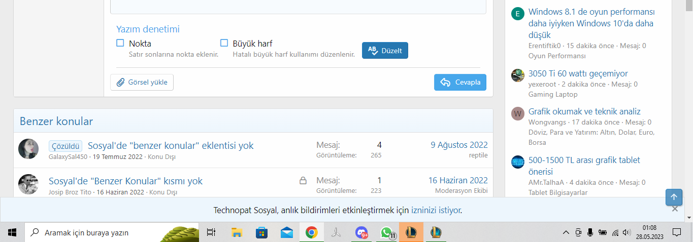 5 590736 Hectopat Katılım 10 Ekim 2022 Mesajlar 2.555 Makaleler 1 Çözümler 26 28 Mayıs 2023 #10 484334 dedi: En son 2022'de böyle konu açılmış. Bu özellik kaldırıldı mı şimdi yoksa yine bir eklenti hatası mı var? Kaldırıldı ise geri getirmek iyi olabilir. Genişletmek için tıkla... Konuda 2.sayfaya gelirseniz gözüküyor. Garip biraz.