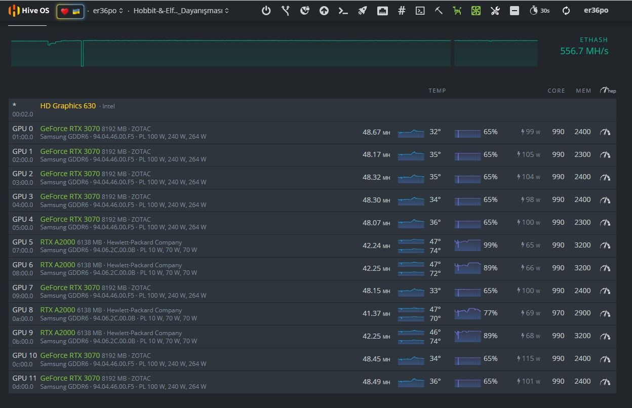 Anca kbir şey daha var ki, az zorlasam kartlar 50 MH/s civarına varıyor: