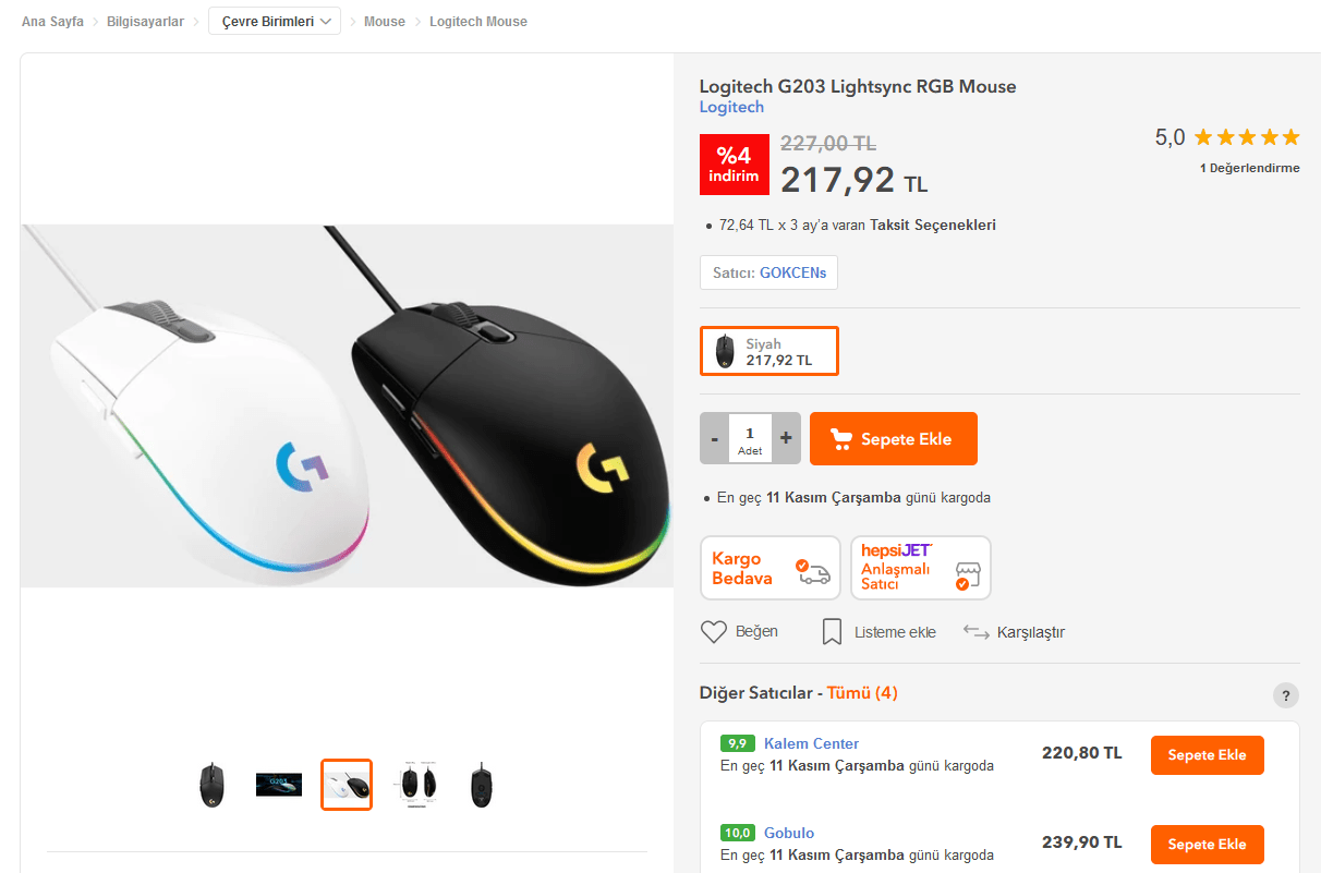 Logitech G203 adlı farenin yurtdışında beyaz olarak satıldığını gördüm ama Türkiye'de hiçbir yerde göremedim.