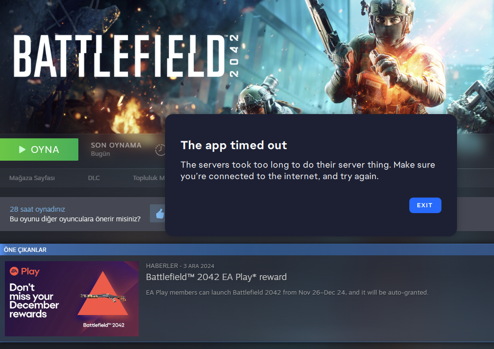 Düne kadar bir şey yoktu. İşten geldim 2 el atayım dedim böyle hata alıyorum. EA dosyalarından Update yaptım bir şey olmadı.