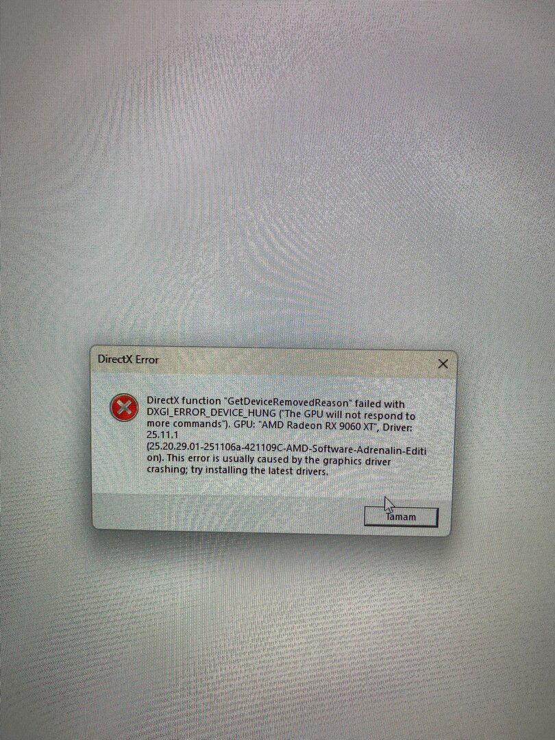 Merhaba sistemi alalı 3 gün oldu, BF6 MP oynarken 1-2 oyun sonra bu hatayı alıyorum ve sorunu çözemedim, yardımcı olun, hevesim kursağımda kaldı...