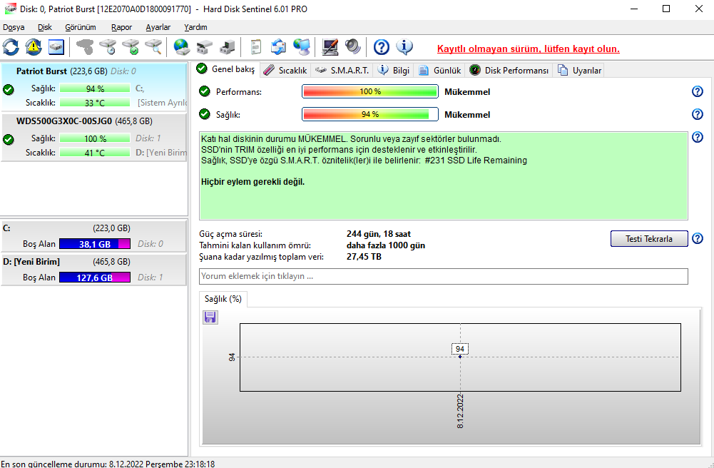 Arkadaşlar bilgisayarı her açışımda öncelikle C diski onarılıyor geliyor ve bilgisayar açılıyor. Neden bunun başladığı hakkında bir fikrim yok. Windows'un kurulu olduğu SSD Patriot Burst 240GB SATA. Denetim masasında bakım kısmında böyle görünüyor: