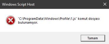 Bilgisayar açıldığında "Windows\Profile\1.js komut dosyası bulunamıyor." hatası