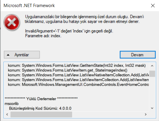 Bilgisayar açılınca "System.ArgumentOutOfRangeException" hatası veriyor