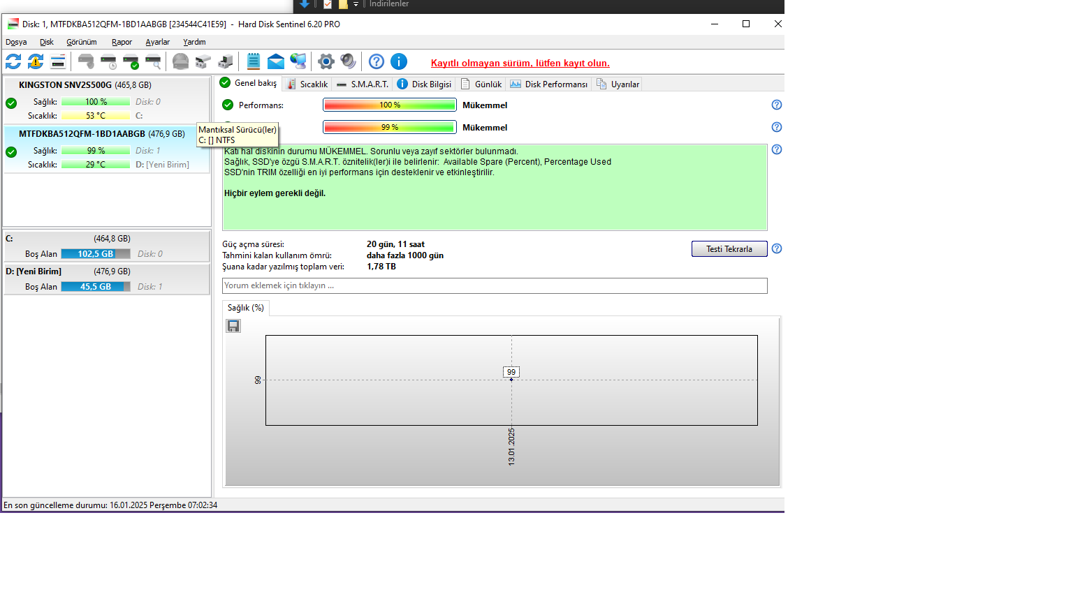 Sizden disk testi istediğim zaman bu rehbere göre disk testi yapıp sonucu gönderebilirsiniz. SSD için aşağıdaki 2 aracı kullanın. https://www.hdsentinel.com/ > Sağlık durumunu gönderin. https://www.guru3d.com/files-details/as-ssd-benchmark.html > Okuma yazma hızını gönderin. HDD için ise health...
