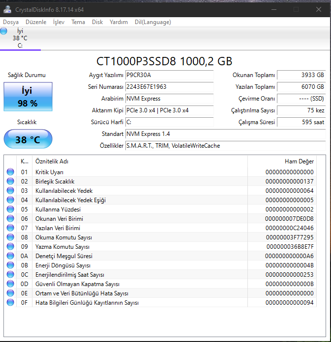 RAM'den olabileceğini düşünüyorum RAM'ya da hard disk CrystalDiskInfo'yu indirip health yerinden SS atabilir misiniz?