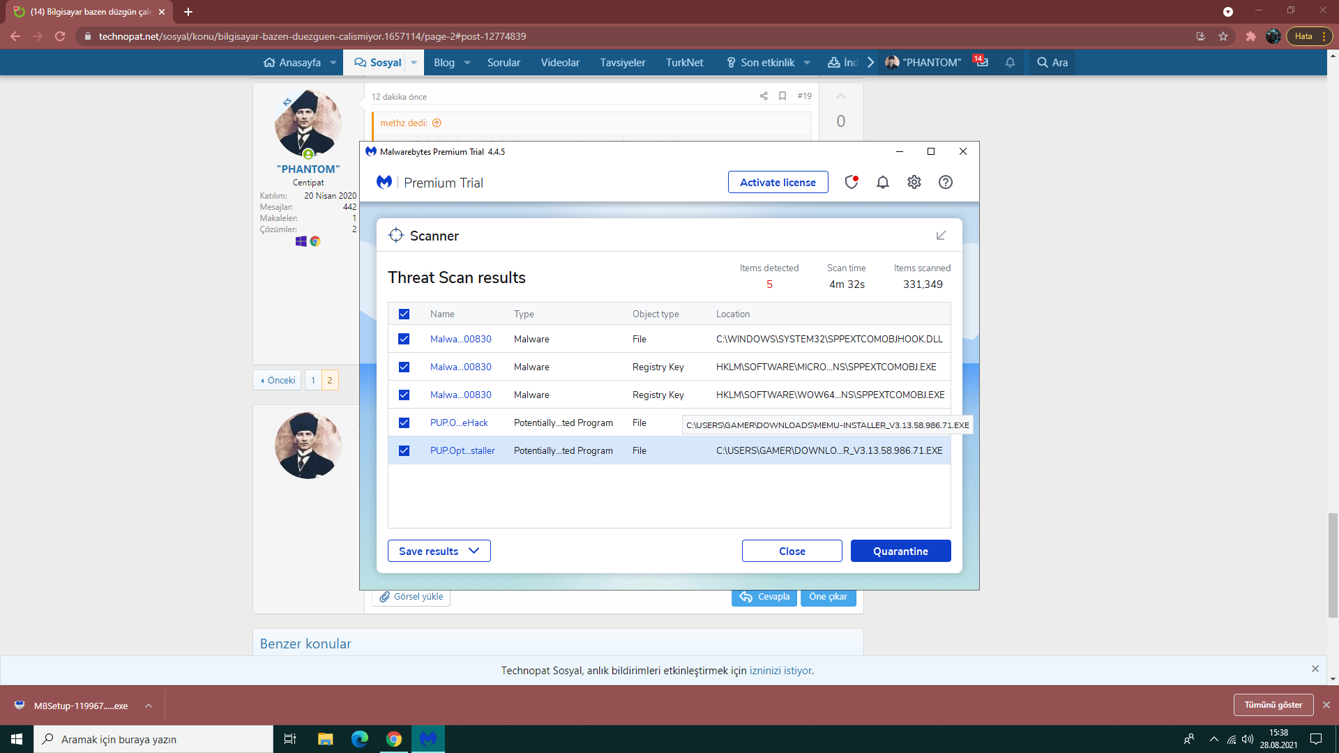 Tamam hocam sildim Kaspersky i.Malwarebytes indiriyorum tam tarama yapıp dediğiniz gibi Kaspersky yükleyeceğim.