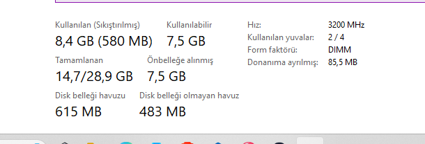 Merhaba. Bilgisayar boşta olmasına rağmen 16 GB RAM in 8,5 GB'ını kullanıyor. Bu değer normal mi?