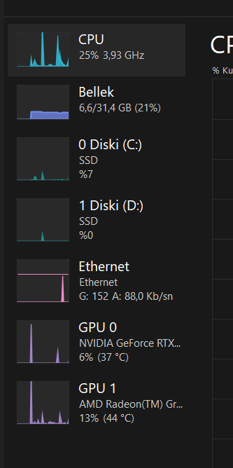 Bütün her şeyi kapattım Chrome dahil %22 düştü boşta bu oluyor sanırım.