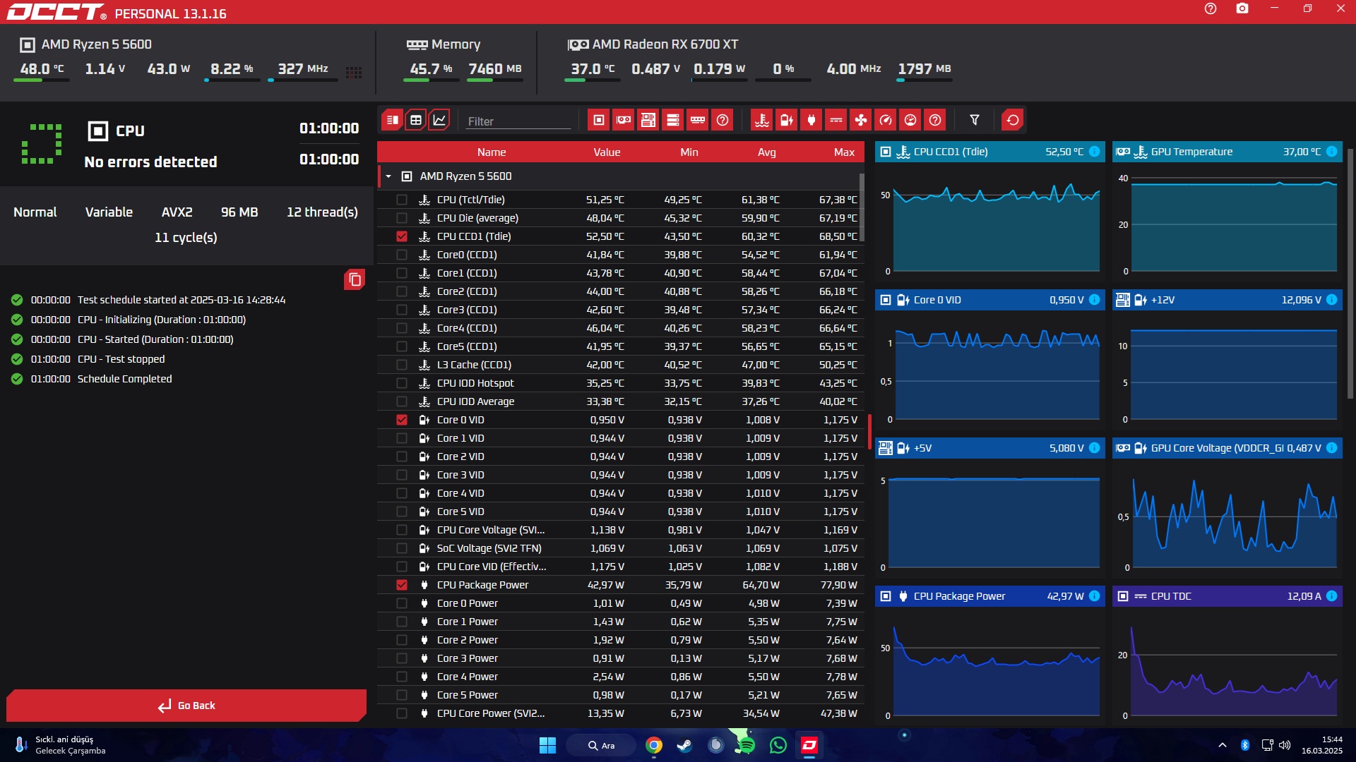 OCCT ile 40 dakika CPU testi yap ve sonuçları yolla.
