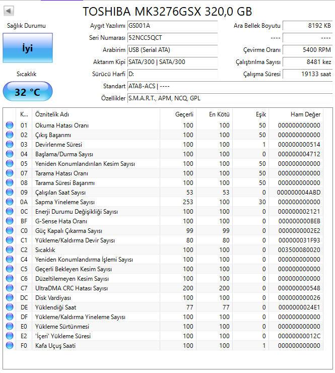 Tüm sistem gidiyor demenizden bir HDD hatası gibi geldi. CrystalDiskInfo'dan bir sağlık kontrolu yapar mısınız SSD ve HDD'ye?
