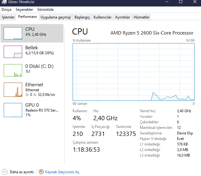 Kendi bilgisayarımın "Çalışma zamanı" (ne kadar süredir açık olduğu):