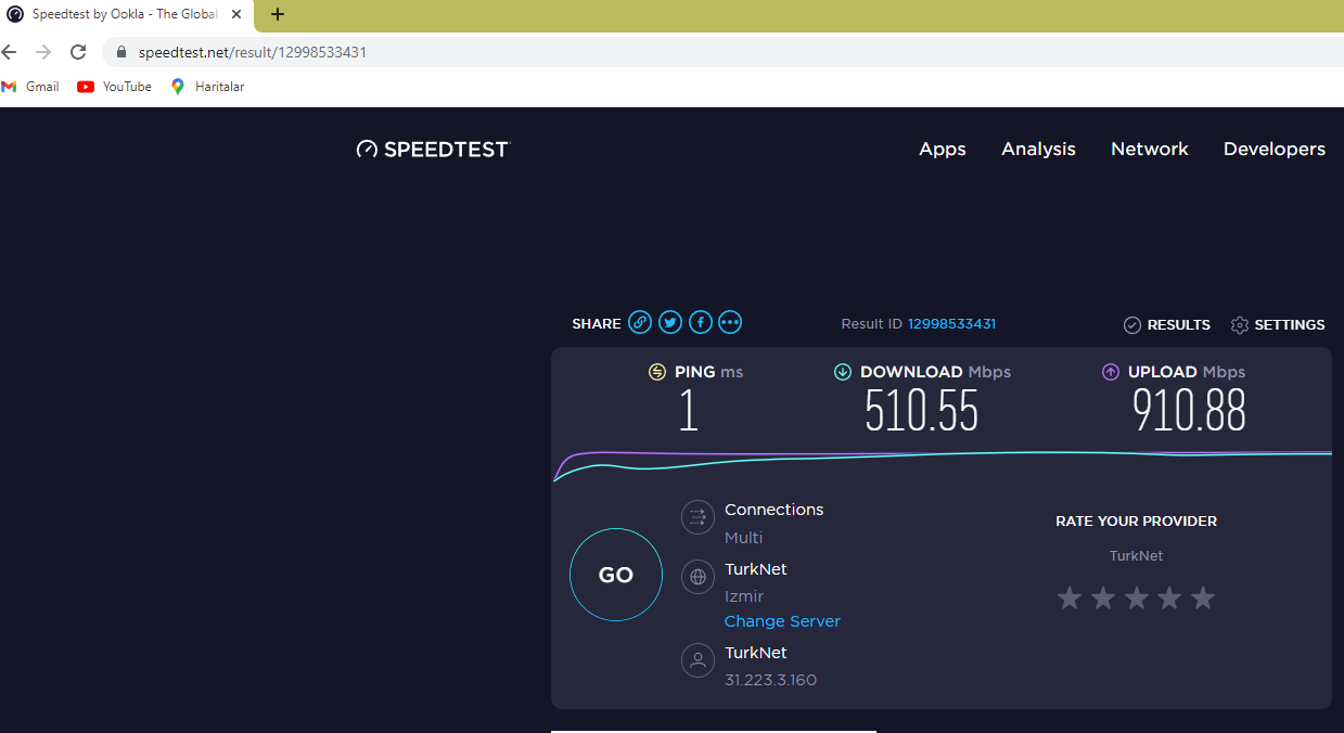 O işlemciyle 500 Mbps görmen cidden mucize Speedtest yaparken Görev Yöneticisi'ni açın ve test yaparken değerlere bakın.