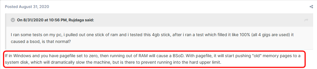Burada 4 ve 8 GB RAM'lerde yüksek kullanım sonucu mavi ekran aldığını söyleyenler olmuş. Sizin senaryonuz yani 32 GB ile aralarında epey fark var ama merak ettiğimiz konuya en yakın cevap bu konudaydı, başka bir yerde göremedim pek. Neyse, bu konuda "pagefile" ile alakalı konuşmuşlar. Yani RAM'de yer kalmazsa sabit diskteki alanı kullanarak geçici RAM oluşturma olayı. Bir nevi sanal bellek.